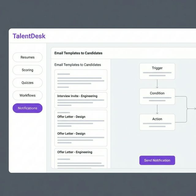 Rejection, quiz invitation, and selection emails automatically dispatched via Gmail, giving every candidate a professional experience without manual effort.