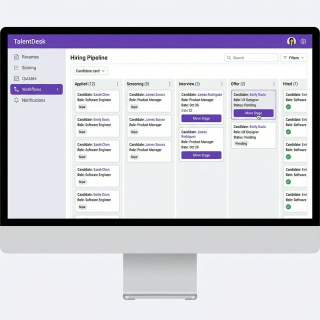 Automatic progression or rejection based on configurable score thresholds, removing manual bottleneck decisions and saving you 6+ hours per hire.